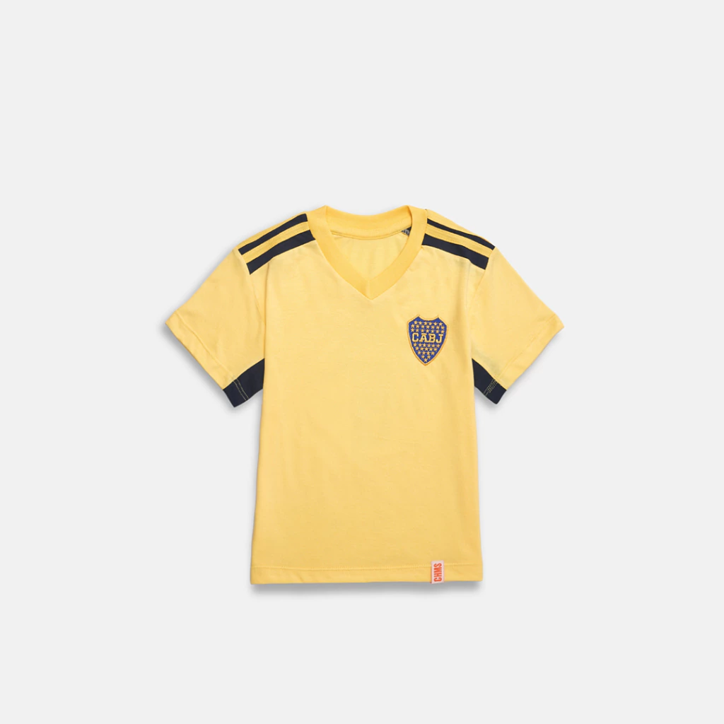 Viví la pasión xeneize con esta remera amarilla de Boca Juniors, ideal para hinchas de alma. Confeccionada en 100 % algodón, ofrece comodidad y frescura para usar en la cancha, en cumpleaños, reuniones o donde quieras mostrar tu amor por el club.